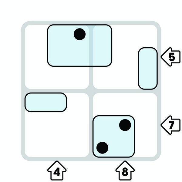 - Вирівняйте кубики та зрівняйте суми – розмістіть фішки так, щоб грані кубиків відповідали один одному, та влучіть точні суми, позначені стрілками напрямку.