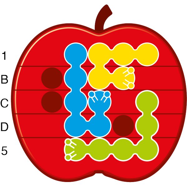 Розмістіть 3 гусениць на ігровому полі з яблуками. Прості завдання дають підказки щодо розташування деяких гусениць.