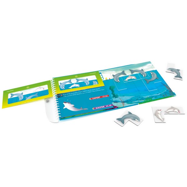 Дельфінам подобається грати і пірнати в хвилі .. але ми бачимо цих розумних тварин тільки тоді, коли вони вистрибують з води. А що ж відбувається під водою? Поринь в хвилі і, за допомогою 48 завдань дорожньої головоломки, пройди усі рівні: від легкого до складного. 7 магнітних елементів відкриють тобі морську таємницю!